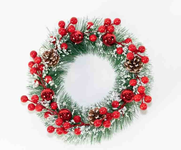 CORONA NEVADA CON DECO ROJAS